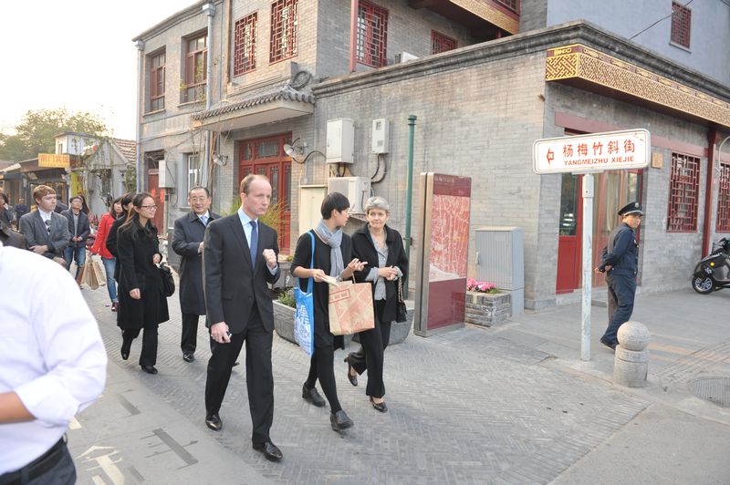 2013年10月21日下午,聯合國教科文組織總干事伊琳娜·博科娃女士參觀了楊梅竹斜街和大柵欄商業(yè)街,隨行人員包括聯合國教科文組織北京代表處主任辛格先生,北京市科委主任閆傲霜及北京市科委北京工業(yè)設計促進中心主任陳冬亮。西城區(qū)副區(qū)長陳寧、大柵欄琉璃廠建設指揮部常務副書記王志忠隨行陪同,北京大柵欄琉璃廠文化發(fā)展有限公司副總經理賈蓉隨行講解。